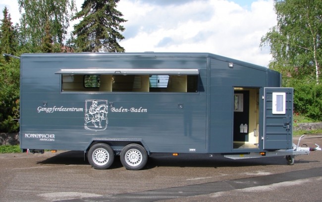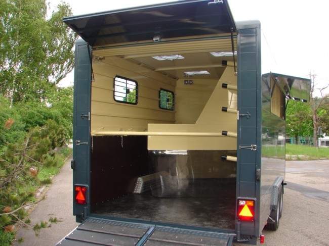 Diese Bauart hat den Vorteil, dass die Pferde annähernd quer transportiert werden können, somit kann das Leergewicht des Anhängers sehr weit reduziert werden.