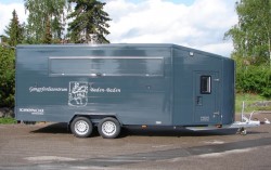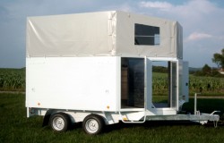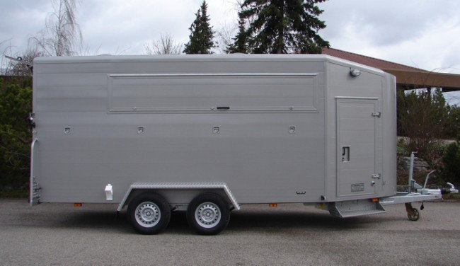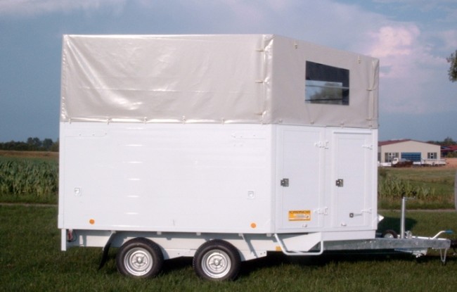 Auch die Planenfahzeuge erhalten Sie bei uns z.B. mit großer begehbarer Sattelkammer mit vergrößerter Einstiegstüre, Rundung oder auch einer Markise. Die Servicetüre zwischen dem Pferdebereich und der Sattelkammer ist natürlich auch Standard