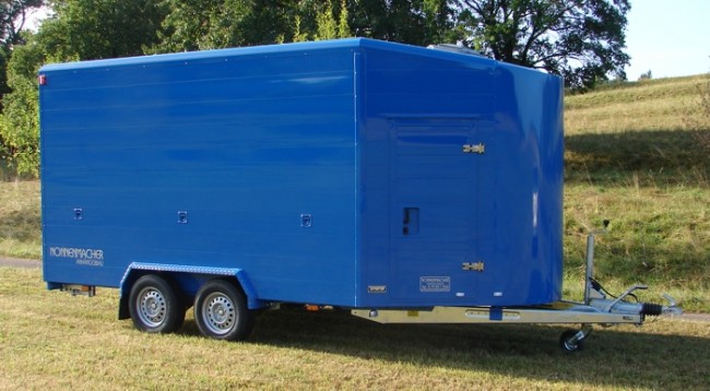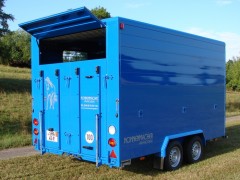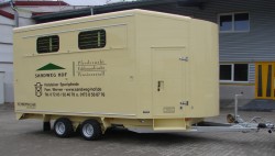 Unter dieser Modellreihe bieten wir Ihnen Pferdeanhänger in Schrägststellung von 3 bis zu 4 Pferden oder in Längsstellung für 3 Pferde an. Die Anhänger werden als Planenfahrzeug oder als Thermodachfahrzeug nach Ihren Wünschen gefertigt.