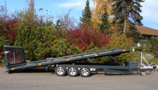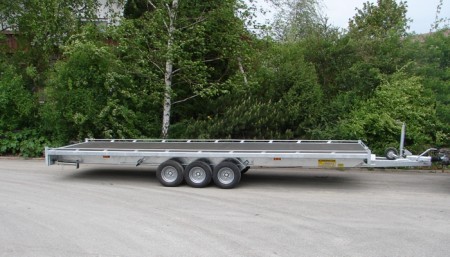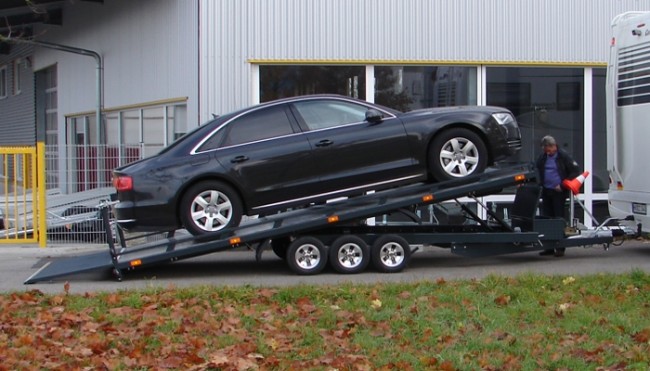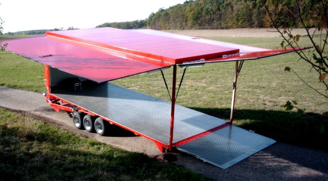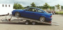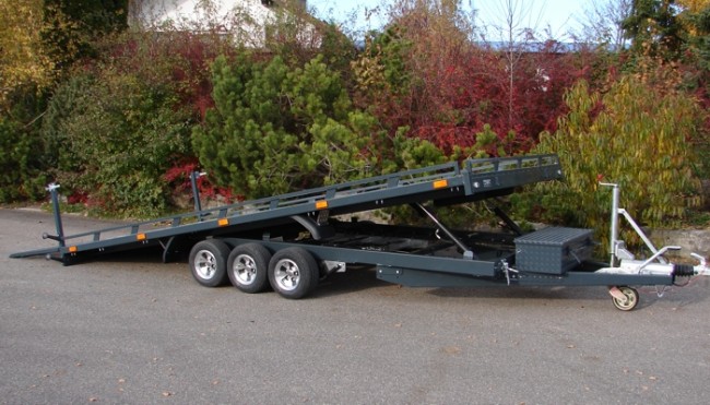Dieser Anhänger ist auch für den Transport von Fahrzeugen mit Tieferlegung und Spoiler geeignet.