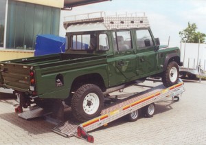 Wir fertigen natürlich auch Kippanhänger mit verstärkten Rahmen und verbreiterter Ladefläche für den Transport von schwereren Fahrzeugen wie z.B. Jeeps oder Transportern.