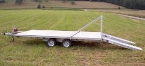 Es ist auch möglich den Anhänger nicht kippbar zu gestallten und Alu-Auffahrschienen hinten unter der Pritsche einzuschieben.
