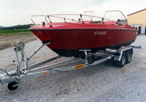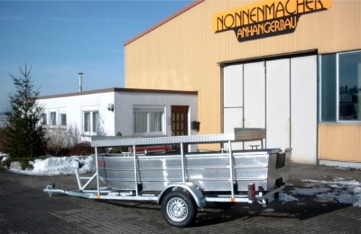 Für Feuerwehren oder für den Gewässerschutz wurden diese Anhänger konzipiert. Das Boot wird mittel einer Seilwinde auch auf befestigtem Boden aufgezogen. Über dem Boot wurde eine Alu-Wanne zum Transport von Ölsperren und ähnlichem angebracht.
