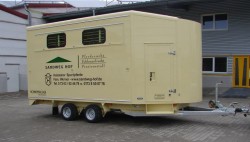Ebenso wichtig ist der richtige Transport der Pferde. Ein 08/15 Anhänger reicht in vielen Fällen für besondere Pferde nicht aus. Aus diesem Grund haben wir die Verhaltensweisen der Pferde beim Transportvorgang genauestens studiert, und unsere Anhänger nach diesen Erkenntnissen gefertig.