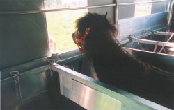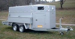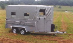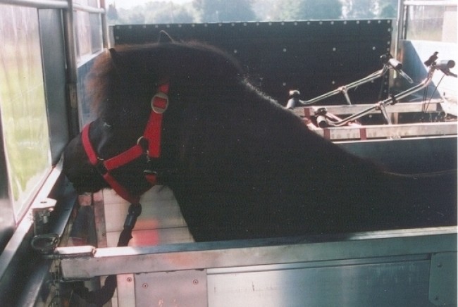 Zum Transport der Kutsche wird einfach die Heckklappe auf ausziehbare Streben gelegt und mit zusätzlichen Streben seitlich gestützt. Nun kann die Kutsche mit Auffahrschienen verladen und verzurrt werden. Um dennoch einen Schutz der Pferde gegen ein Verrutschen der Kutsche nach vorne zu erreichen, ist eine verstellbare Alu-Trennwand im Anhänger angebracht.