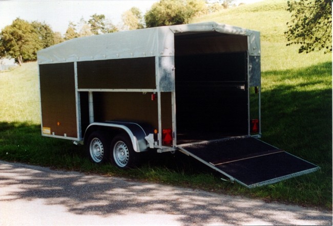 Aufgrund dieser Größe kann man die Pferde im Anhänger quer stellen. Dies hat nicht nur den Vorteil einer schonenden Transportweise, sondern der Raum im Anhänger wird auch noch optimal genutzt. So können bei kleinen kompakten Anhängern schon 4-5 Pferde, oder 2 Pferde und eine Kutsche transportiert werden. Wir fertigen alle Anhänger entweder ind der Stahl/Holz-Bauweise oder auch im wertbeständigem Aluminium.
