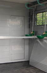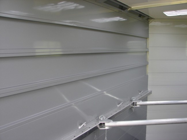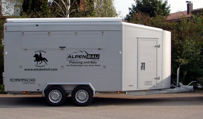 - Doppelwandige Alu-Profile nur im Schlagbereich der Pferde, weiter nach oben die offenen Profile, Sattelkammer, Sattelkammertrennwand aus offenen Profilen (siehe oben). Auf Wunsch natürlich ohne Mehrpreis aber mit Mehrgewicht erhältlich, komplett geschlossene Profile ringsum.