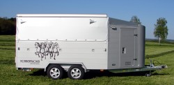 Unter der Modellreihe for ISI bieten wir Ihnen Pferdeanhänger in Querstellung von 3 bis zu 8 Pferden an. Die Anhänger werden als Planenfahrzeug oder als Thermodachfahrzeug nach Ihren Wünschen gefertigt.