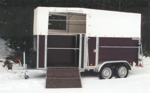 Einen Anhänger zu planen und anzufertigen, der zwei Großpferde und ein Pony transportieren kann, und dabei nicht zu breit wird. Die vordere Rampe dient dem Pony als Ein- und Ausstieg. Durch die Verlängerung des Anhängers wurde auch eine sehr große Sattelkammer geschaffen.