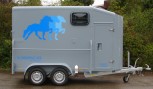 Erreicht wird dies durch einen kompletten Alu-Rahmen sowie spezielle verrottungsbeständige Platten aus dem Flugzeugbau. Mit dem Knott-Sicherheitsfahrwerk aus einer Tandem-Verbundachse mit Radstoßdämpfern überzeugt der Anhänger natürlich weiterhin auch durch seine optimalen Fahreigenschaften. Somit kommen Roß und Reiter entspannt ans Ziel! Das umfangreiche Zubehör rundet das Programm des Anhängers ab, doch überzeugen Sie sich doch selbst: